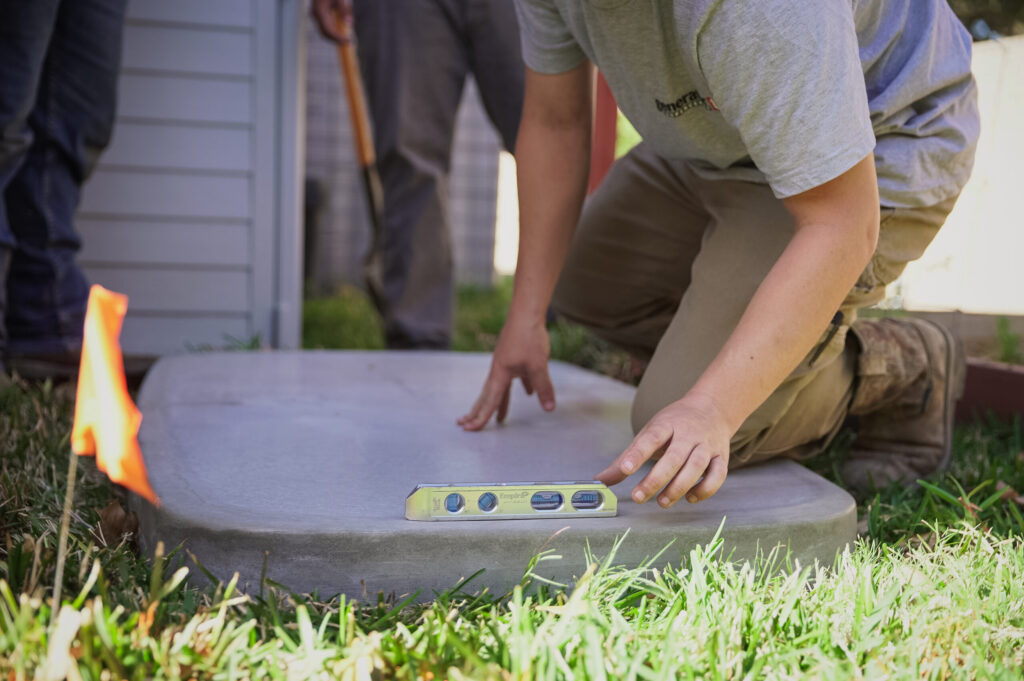 Our team prepares the site by trenching utility lines and installing a sturdy concrete or composite pad for a solid foundation.