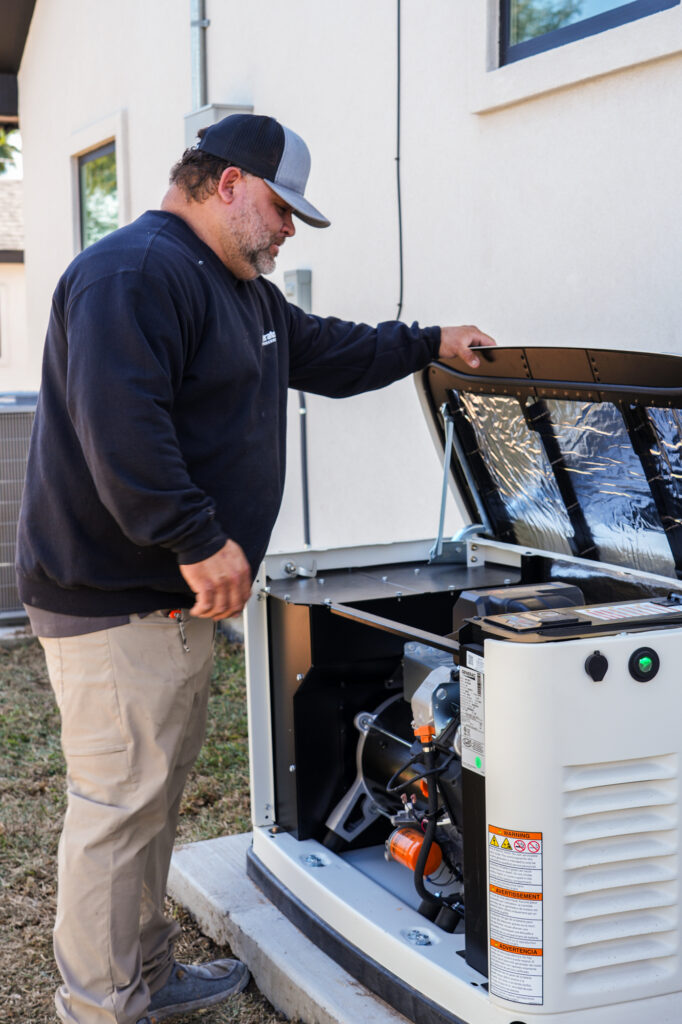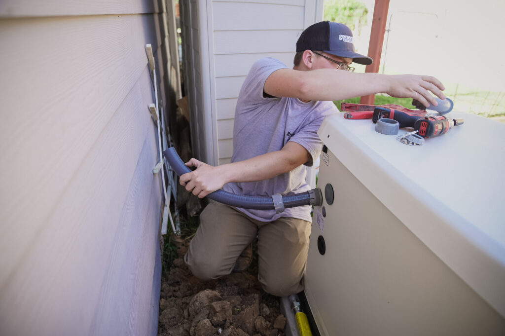 Our in-house certified electricians and plumbers professionally connect the gas lines, transfer switch, and electrical wiring.